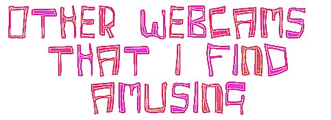Here is a list of webcams of people I either know or would like to know or would like to blow up if I had the chance... you figure out which is which. If you have a cam that fits in any of these categories (and it must be your cam, not someone that entertains you or that you own a membership in) or if I am a horrible person for not remembering your cam in the first place - email it to me along with an icon of some sort and why its a cool cam.
